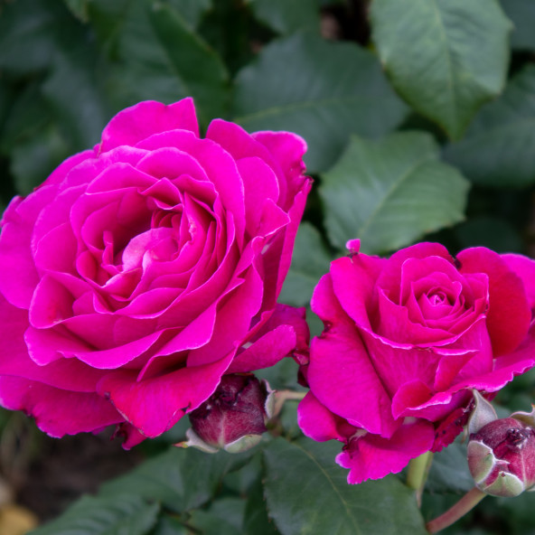 An unusual colour, dark violet, with double and long lasting flowers, a very strong scent and a bushy and compact growth are the extraordinary characteristics of this new floribunda. It is good for monochromatic beds or mixed bordures with other ornamental plants. Height cm 60/80.