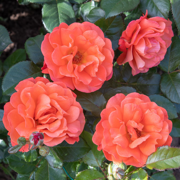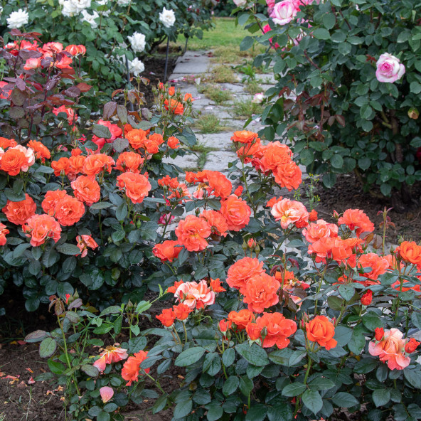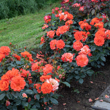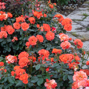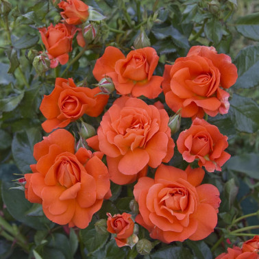 Compact and very remontant bush. Intense orange color. height 60/80.