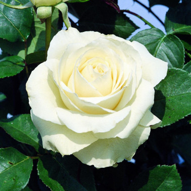 White roses are often "difficult" plants but with this variety repeat flowering and disease resistance are assured. The flower is large, elegant and high centered , with nearly 40 petals, thick and well disposed. When fully opened, the flowers are perfeclty white. More vigorous than how white roses plants are, with light green foliage. Height cm. 100/120. ||