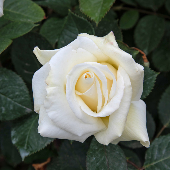 A new rose with flowers of good shape very large and double. Bottom of the petals just colored creamand pure white when fully open. The plant is very robust with compact vegetation and desease resistant. Pleasant scent of tea rose. Abundant re-flowering. Height 70/90