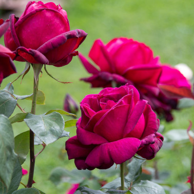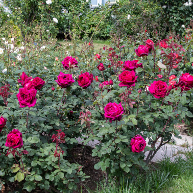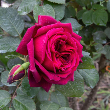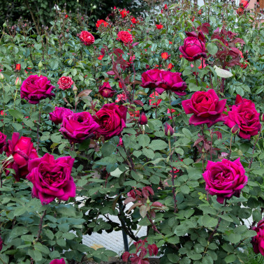 The deep velvet coloured and double scented roses have always had a particular charm. This variety has a very big flower, slowly opening because of the large quantity of the petals. The plant is vigorous, healthy and well branched. Very strong fragrance. Height cm 90/110.||