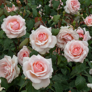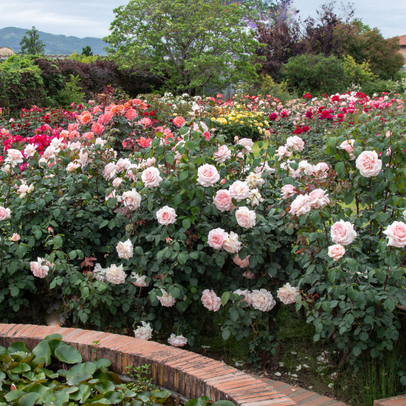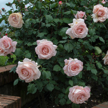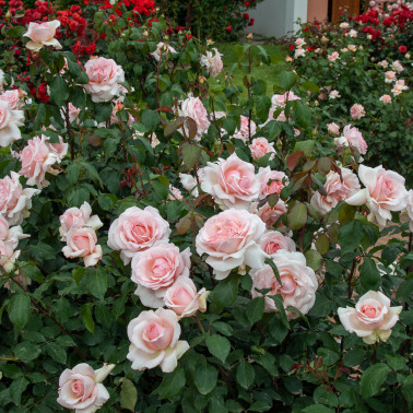 Named after the big "sculptor" of high fashion whose dresses have been described as masterpieces to be lived and shown in museums for everybody joy. A big rose, "modern" for the flowers dimension, the disease resistance, the continuous flowering and the delicate tonalities of the colour, which are clear pink in the outer petals and pearly pink in the flowers middle. It is "old", on the contrary, for its petals disposition and the flowers shape, very double, quartered and slow opening, like many varieties of recente selection, coming from crosses between very different old and new roses. Charming and very strong fragrance. Height cm. 120/140.||