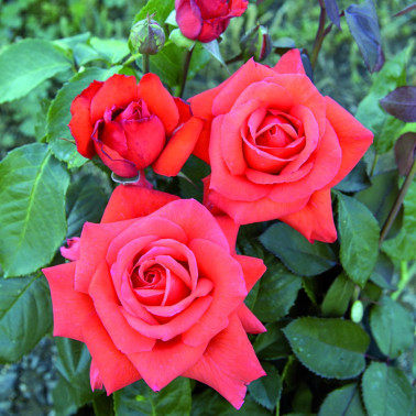 Compact bush with a warm hue. Coral red color. Very large and well formed flower. Height 70/90.Good desease resistance.