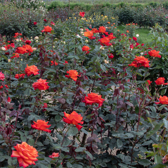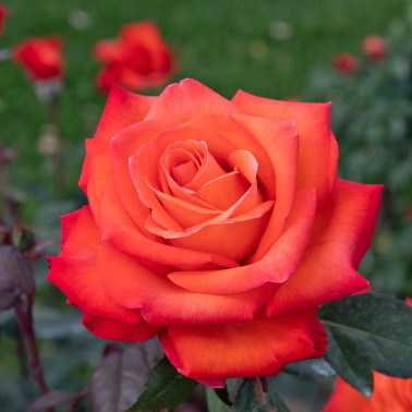 A perfect and elegant shape of the flower shows a bright orange colour, suitable for brillant spotin the garden. This variety offers continuous bloomings for all the season and it is strong and vigorous. Is is slightly spicy scented.||Height cm 80/100