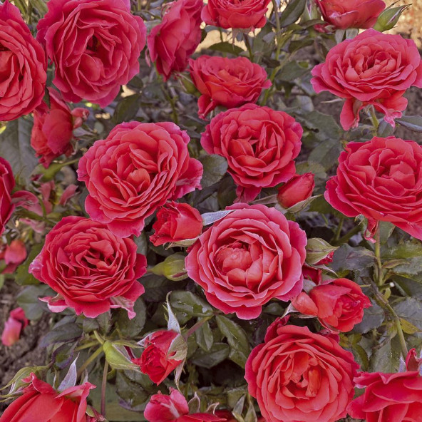 Rosai a cespuglio di piccole dimensioni, adatti alla realizzazione di bordure basse, giardini rocciosi e piccole aiuole multicolori. Rifiorentissimi per tutta la stagione. Distanza di trapianto cm 35/40. I rosai vengono forniti a radici nude da Novembre a Fine Febbraio ed in vaso 5 litri per tutto l'anno, con aspetti vegetativi diversi a seconda del periodo.