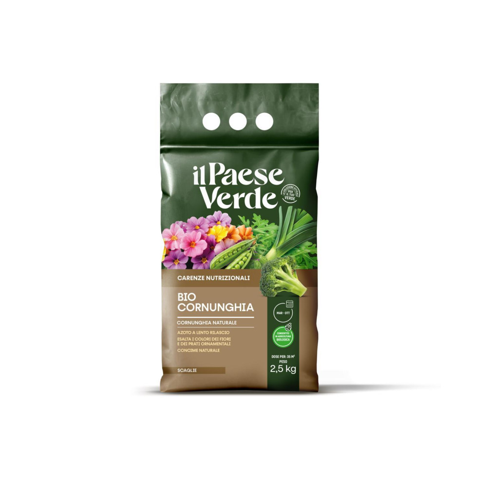 Biocornunghia è un fertilizzante naturale di origine animale, derivante dalla macinazione di corna ezoccoli. Il suo uso, esalta i colori e prolunga le fioriture grazie al lento rilascio di azoto.