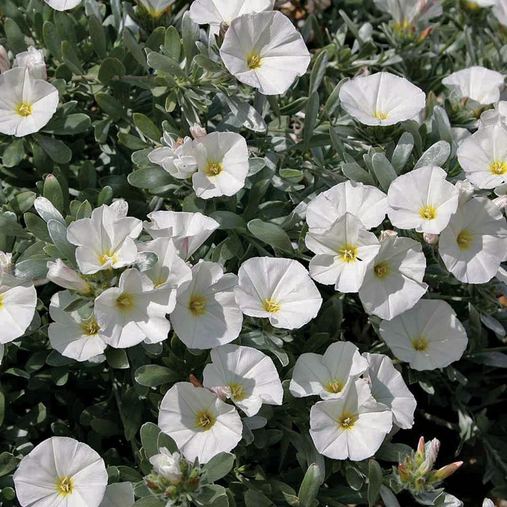 Arbusto compatto con fogliame persistente grigio argenteo, portamento allargato e altezza fino a circa 1 metro. Produce fiori campanulati bianchi per tutta la primavera. Resistente al freddo.Fornito in vaso diametro cm 16.