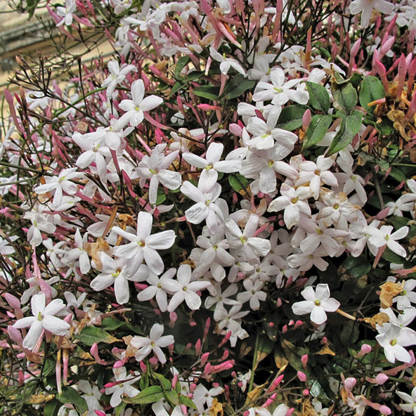 Sempreverde, fiori bianchi rosati profumatissimi. Resistente al freddo. Fornito in vaso diam 16.