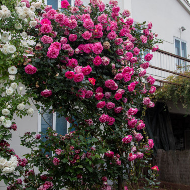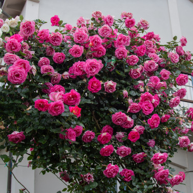 Rampicante a fiori grandi. Colore rosa acceso. Profumo intenso. Piante fornite a radici nude fioriscono al secondo anno di trapianto.