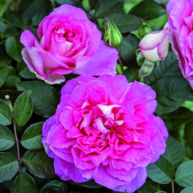 Fiore dal colore rosa acceso e argento. Fiore grande e doppio. Profumo travolgente. Altezza 80/100.Resistente alle malattie e adatta al reciso. Fornita in vaso diam cm 18 o radici nude.