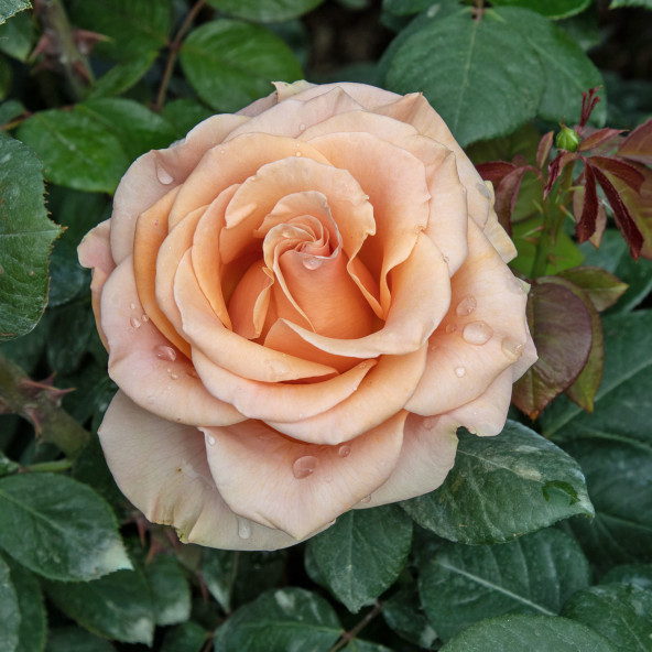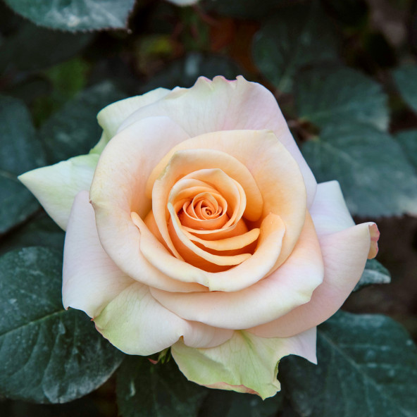 Gli eleganti bocci di questa varietà si presentano di un colore crema albicocca, che nasconde una leggera tonalità verde all’inizio dell’apertura. I fiori molto grandi e doppi possiedono la perfetta forma della classica rosa Tea, della quale richiamano anche le tipiche tinte albicocca tenue. Leggero profumo di agrumi. Pianta vigorosa e resistente. Altezza cm 80/100.