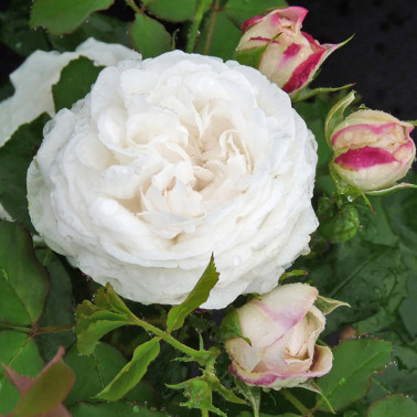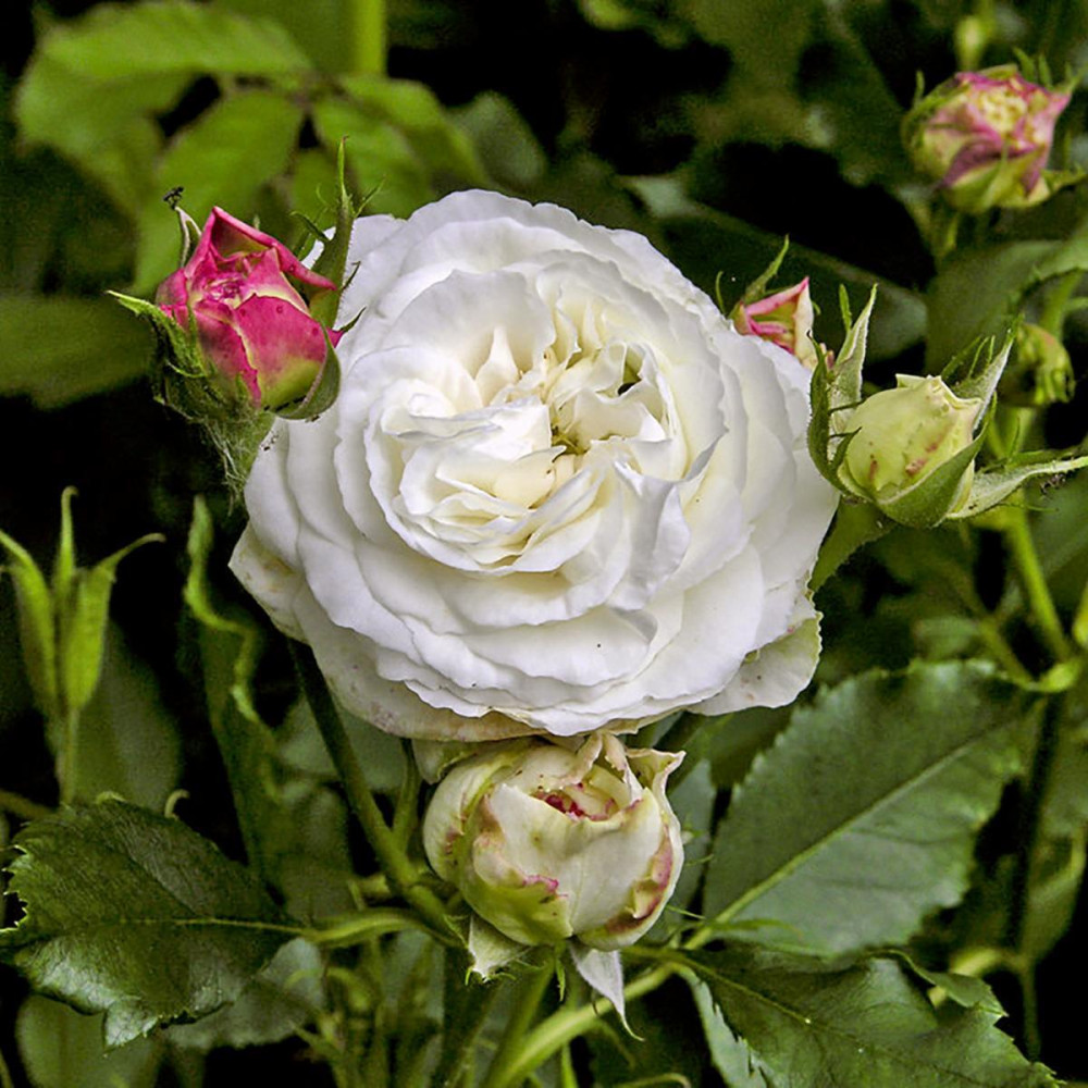 Doppia, compatta e profumata. Occasionalmente rifiorente, colore bianco puro.