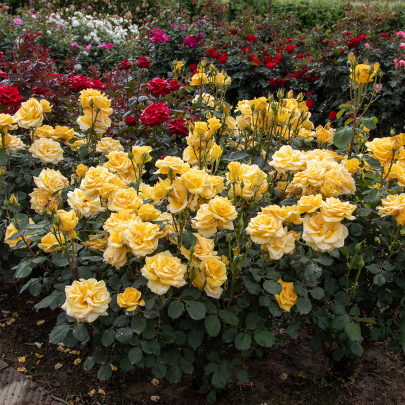 Una delle caratteristiche più evidenti di questa nuova rosa è l’eleganza dei bocci: allungati, turbinati, dal centro rilevato, evidenziano un’allegra tonalità giallo canarino, che muta in giallo limone quando il fiore è aperto. Grazie alla grande quantità prodotta, la varietà offre una rifiorenza pronta e continua durante tutta la stagione. Resistente a tutte le malattie.||Altezza cm 70/90.||||||||||Fornita in vaso diam 18 cm o radici nude.