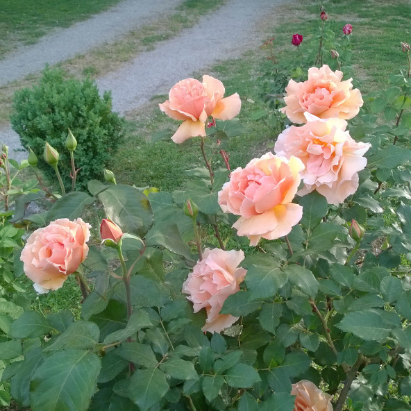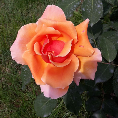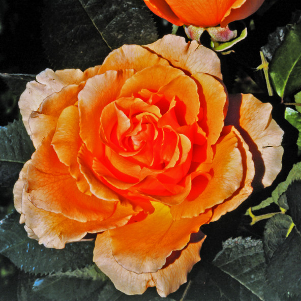 Una grande rosa ormai entrata di diritto fra le più famose per la classica forma, lo splendido colore arancio rame e la insolita grandezza dei fiori.||E molto elegante anche in boccio, fiorisce su lunghi steli ed ha un ricco fogliame coriaceo e lucente. Intensamente profumata. Altezza cm 70/90. Fornita in vaso diam 18 cm o radici nude.