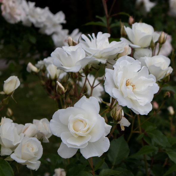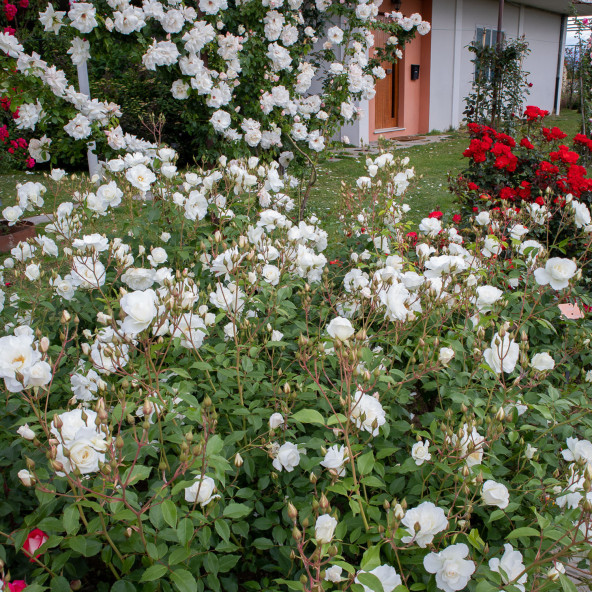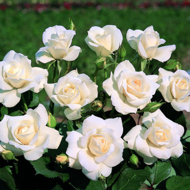 Una delle più belle ed apprezzate floribunde di colore bianco puro, per bordure medio/alte o per grandi gruppi isolati. I boccioli sono eleganti ed i fiori sono doppi. Rifiorentissima fino all inverno. Pianta vigorosa e resistente alle malattie. Disponibile anche nella forma rampicante.||Altezza cm. 70/90.||||||