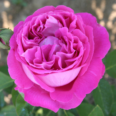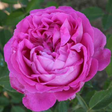 Rosa vivo con fiori molto grandi e doppi, a coppa. Rifiorente e molto profumata.
