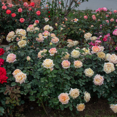 Premiata a Roma con la Medaglia Argento nel 2017. Vigorosa. Il fiore si colora al sole di un belcrema bordato di rosa. Adatta al reciso. Altezza 80/100. Fornita in vaso diam 18 cm o radici nude.