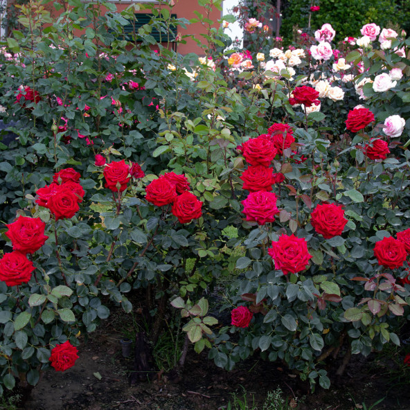 Il fiore è pieno, con petali carnosi perfettamente imbricati, resistenti alle intemperie. Il colore, in pieno sole o sotto la pioggia, si mantiene inalterato fino alla completa apertura dei fiori, che hanno un eccezionale durata anche recisi. Leggermente profumata.||Altezza cm. 80/100.||Forniti a radici nude o in vaso diam cm 18.