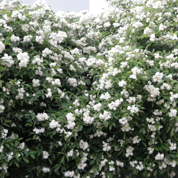 Fiori doppi, medi, profumati, bianco puro. Di grande e rapido sviluppo. Rifiorente e senza spine.||||||