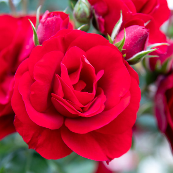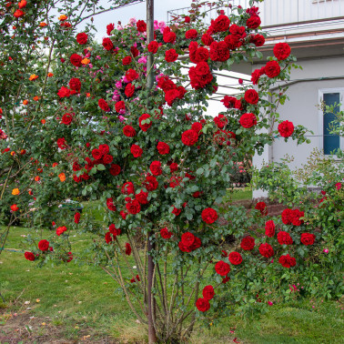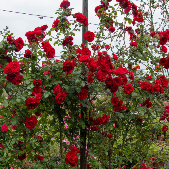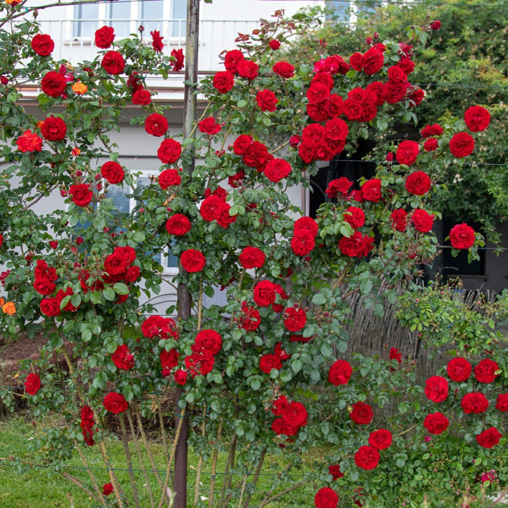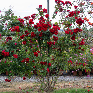 Vigorosa e resistente, fiori semi-doppi rosso sangue. Rampicante contenuta rifiorente con copertura fin dal basso. Le piante fornite a radice nuda fioriscono dal secondo anno di impianto.