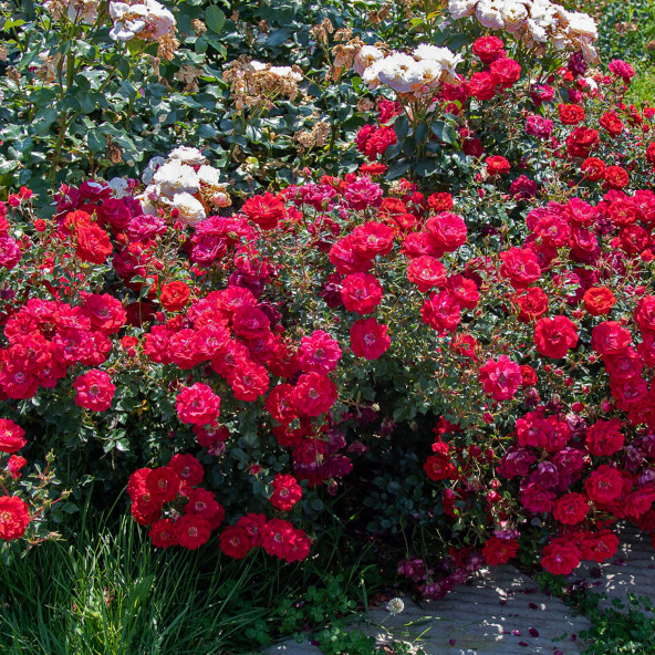 Allegra e luminosa varietà, con fiori rosso brillante, semi-doppi, adatta per un effetto di macchia di colore intenso, se usata da sola o in associazione ad altre tonalità gialle o bianche. Il fogliame è piccolo e folto, assai resistente.||Altezza cm 40/50.||||||